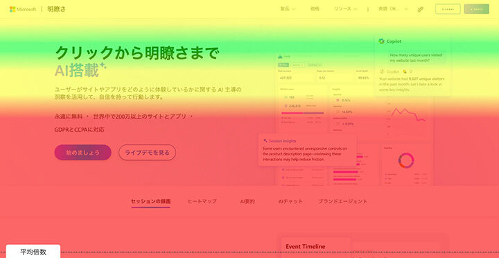 ※画像はイメージです(Microsoft Clarityの管理画面例)。